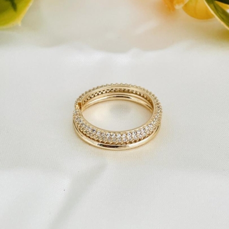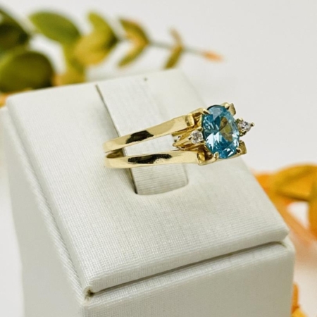 • Anel duplo com Banho de Ouro 18k e Pedra Topázio Azul