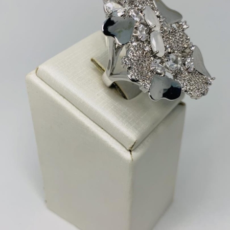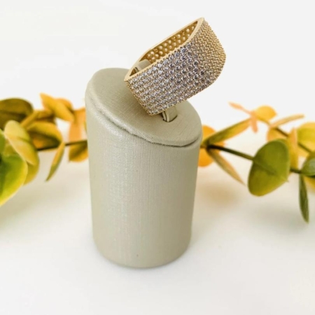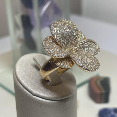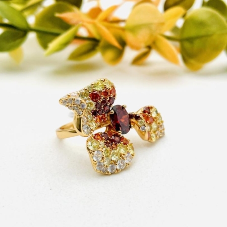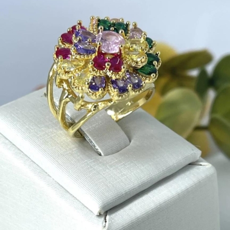 • Anel Flores Prata Com Banho De Ouro Cravejado