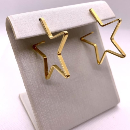 • Argola Aberta Formato Estrela Folheada A Ouro
