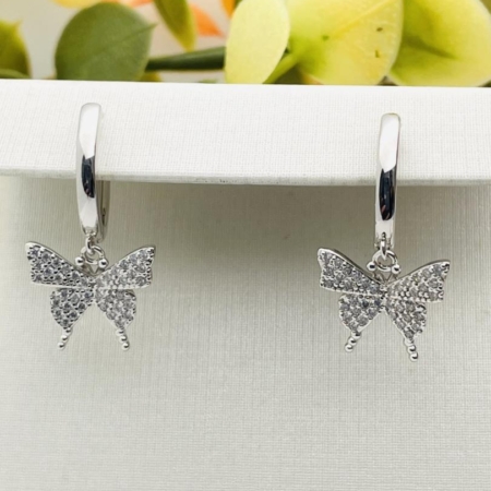 • Argola de Prata Borboleta Cravejasdas com Zircônias e Banho de Ródio