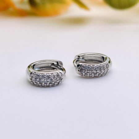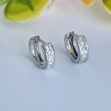 • Argola de Prata Pequena com Banho de Ródio e Zircônias Cravejadas