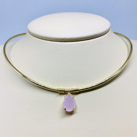 • Aro Aberto Com Pingente Pedra Quartzo Rosa