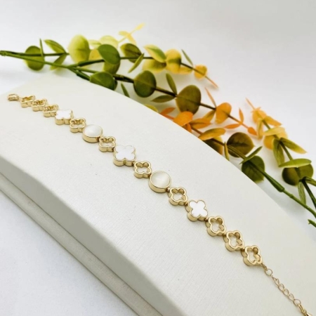 • Pulseira Inspiração Alta Joalheria Com Madrepérola e Olho de Gato