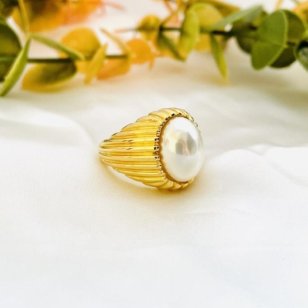 • Anel Largo Formato Flor Com Pedra Central De Cristal