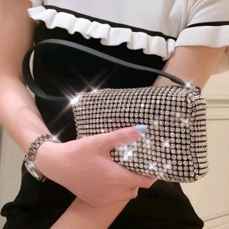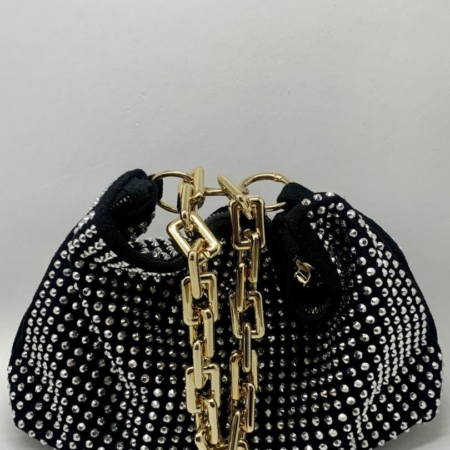 • Bolsa Festa Com Pedras Prata Alça De Couro Sintético Acompanha Corrente Metálica