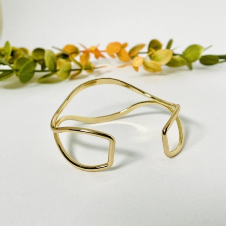 • Bracelete Fechado Largo Banhado A Ouro Branco