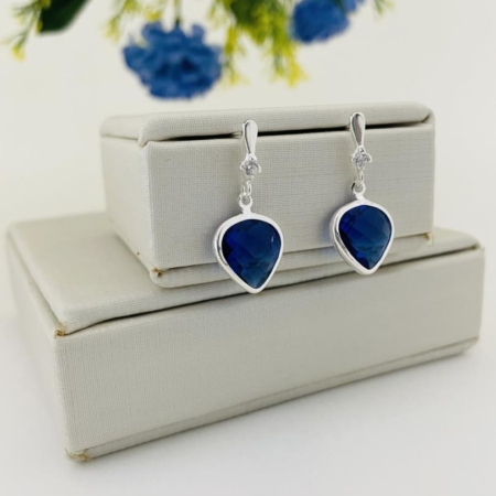 • Brinco de Prata com Banho de Ródio e Pedras Safira Azul