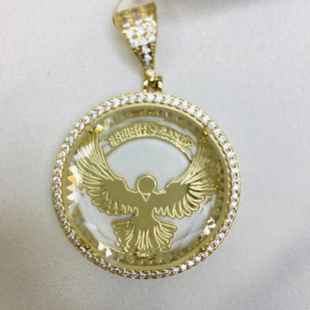 • Pingente De Cristal Redondo Com Medalha De N SRA Dourada