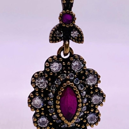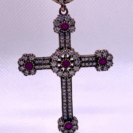 • Pingente De Prata Envelhecida De Cruz Com Pedras Zircônias E Rubi