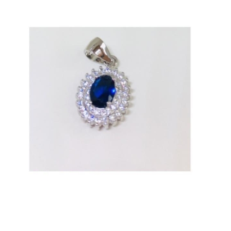 • Pingente De Prata Com Banho de Ródio Cravejado de Zircônias Com Pedra Safira Azul Centralizada