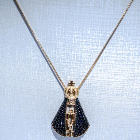 • Corrente Veneziana Dourada Com Pingente de N. SRA Aparecida Cravejado