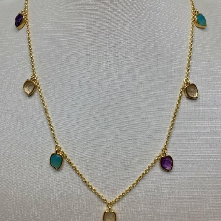 • Colar Riviera Com Pingente Borboleta de Pedras Coloridas