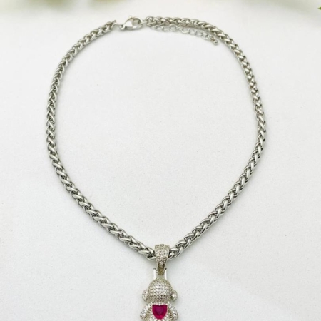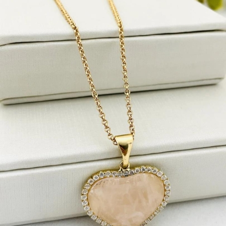 • Corrente Pingente Coração Pedra na Cor Rosa