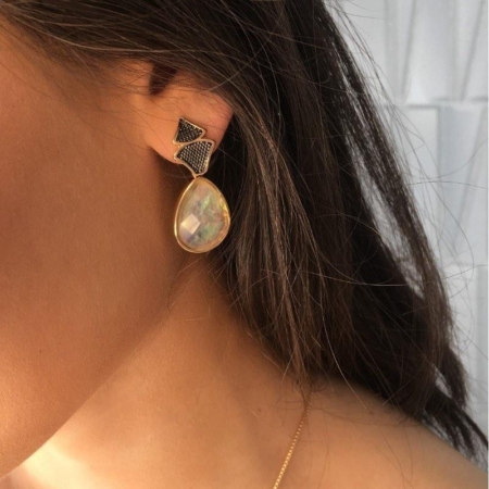 Brinco Dourado Pedra Opala do Mar